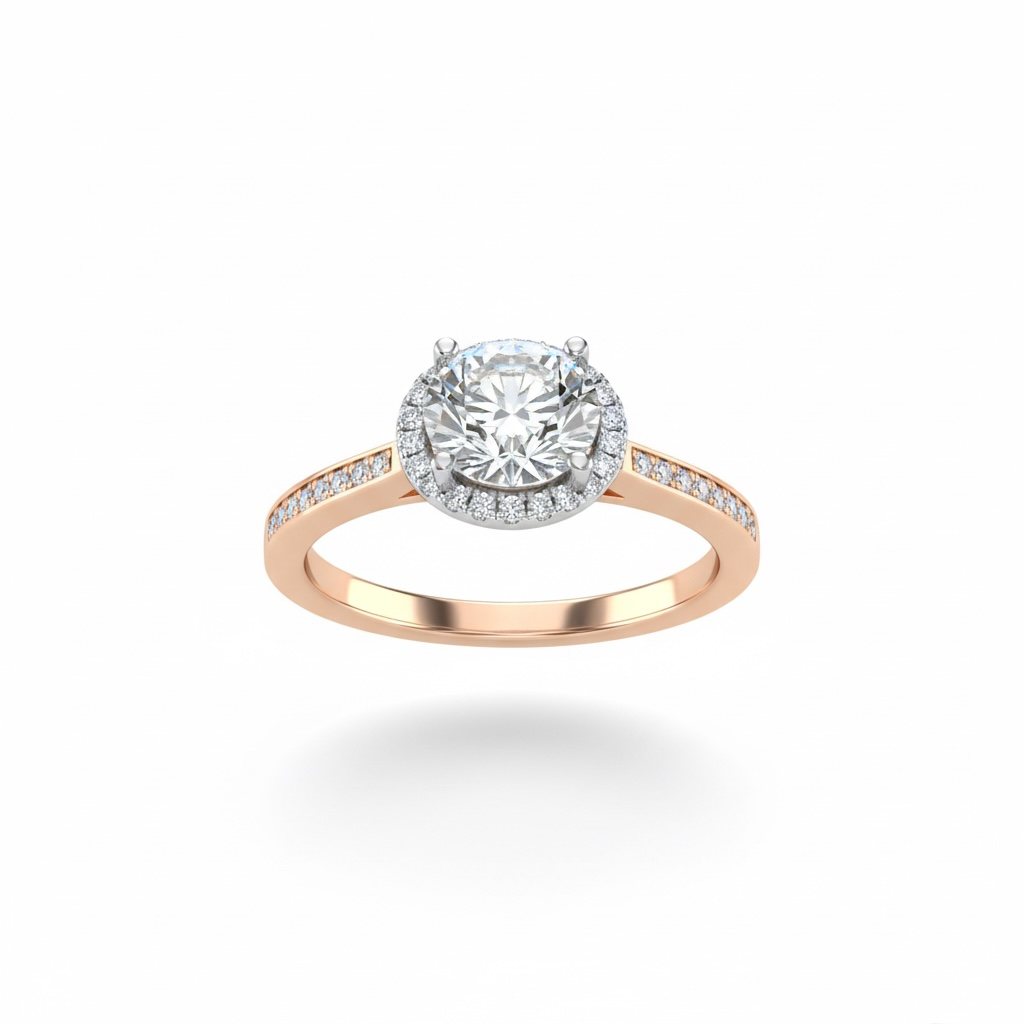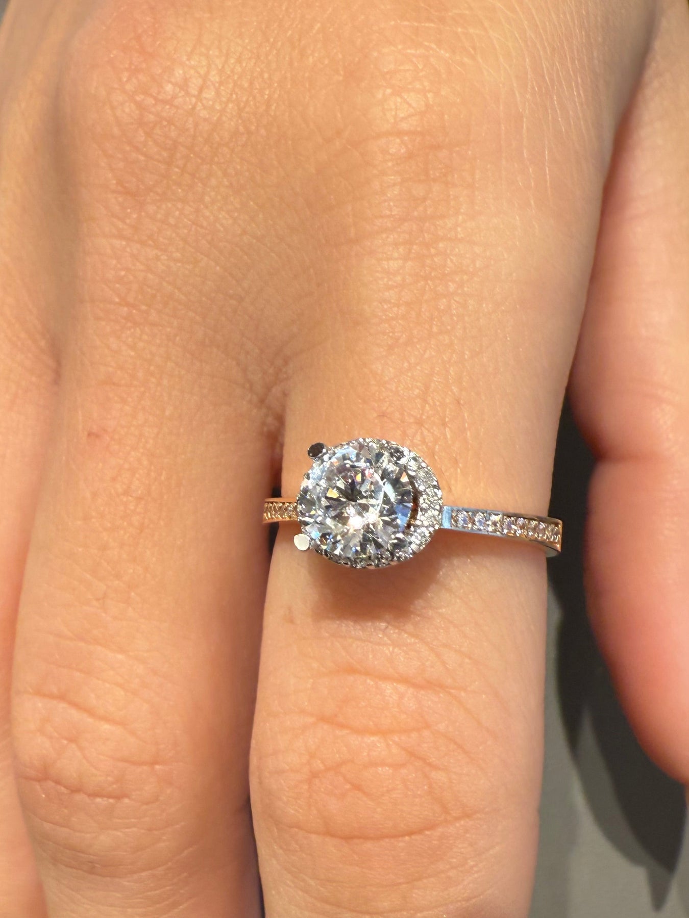 Εντυπωσιακό δαχτυλίδι, μονόπετρο από λευκό και ροζ χρυσό 14 καρατίων
