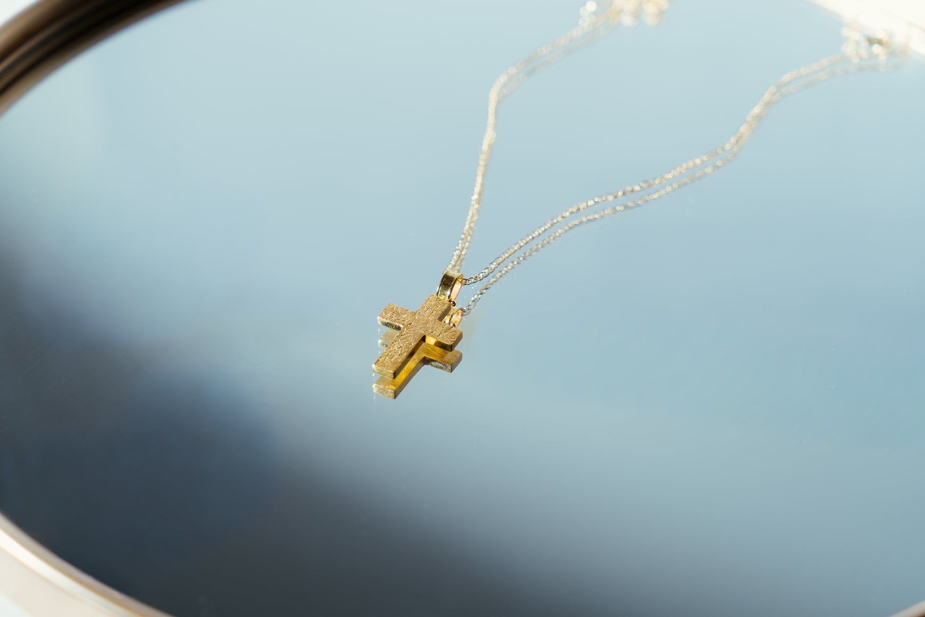 Αυτό το κολιέ διαθέτει έναν σταυρό διπλής βαθμίδας με σατέν, πέτρινη υφή που παγιδεύει απαλά το φως διατηρώντας παράλληλα ένα εκλεπτυσμένο, μινιμαλιστικό προφίλ. Η λεπτή, λαμπερή αλυσίδα είναι επίπεδη και άνετη, καθιστώντας το κομμάτι εύκολο στο styling μόνο του ή σε στρώσεις με άλλες αλυσίδες για βάθος. Η καθαρή σιλουέτα και το ανακλαστικό φινίρισμα φωτογραφίζουν όμορφα τις σελίδες προϊόντων, τους ρόλους και τις τοποθετήσεις σε καταστήματα χωρίς να επιβαρύνουν την εμφάνισή σας.
